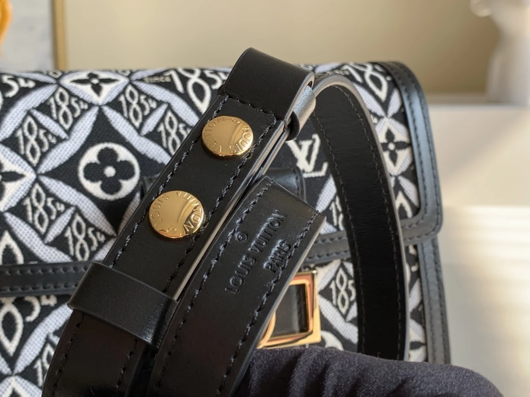 Crafted with the exclusive “AAA-SINCE 1854” jacquard textile, which honors the illustrious history of Louis Vuitton, the bag features an intricate pattern that beautifully blends the iconic LV monogram with the year 1854, marking the brand’s origin. This exquisite material is paired with natural cowhide leather trim that exudes sophistication and resilience.