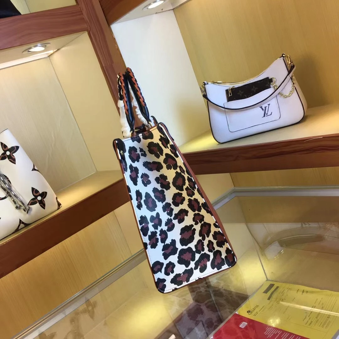 Recommended for fashion enthusiasts who value sophistication coupled with a bold fashion statement, the Louis Vuitton Leopard-Print Sides Onthego bag is a testament to innovative design and exquisite craftsmanship. Whether you are stepping into a high-powered business meeting or meeting friends for an afternoon coffee, this bag effortlessly complements any style, ensuring you make a memorable impression.