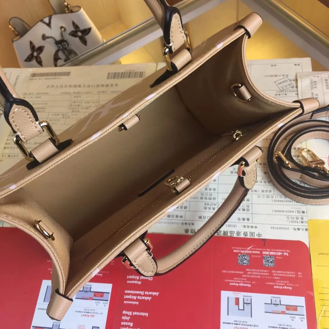 The ONTHEGO PM offers ample space for all your essentials, despite its compact size, making it perfect for daily use or special occasions. The spacious interior, lined with soft fabric, features convenient pockets for your smartphone, wallet, and cosmetics, ensuring you stay organized on the go. The carry handle and removable shoulder strap offer diverse styling options, letting you switch effortlessly between a chic handbag and a practical crossbody.