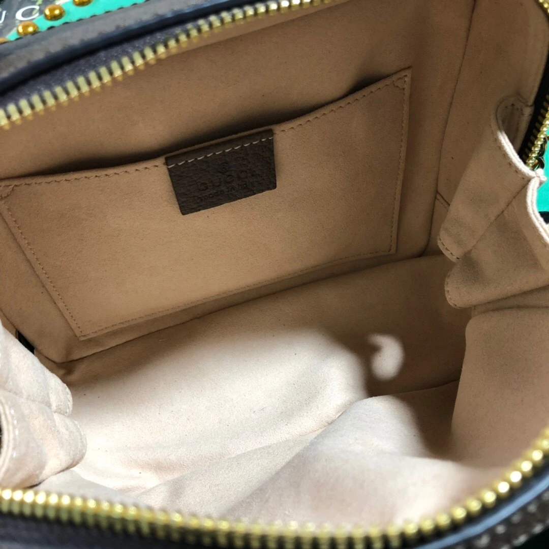 - Gold-toned hardware and signature Gucci double G logo motif, adding a touch of elegance