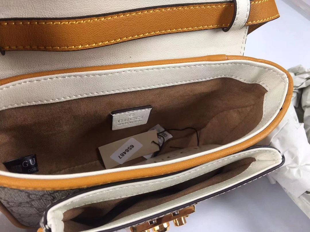 Inside, the Gucci Padlock Mini Bag offers a smartly organized interior, perfect for carrying your essentials. The smooth microfiber lining with a suede-like finish enhances the luxurious feel, while the discreet interior pocket helps keep your valuables secure. Measuring at approximately 8″W x 5″H x 3″D, this accessory offers a compact yet functional space for your belongings.